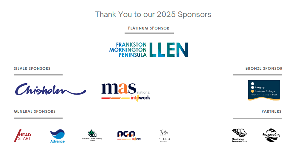 Sponsorship packages available: Gold, Silver, Bronze & General – with opportunities to present an award, and gain recognition across social media with councils, local business and education networks! You can also contribute by donating door prizes, table centrepieces or event styling – a great way to promote your business on the night. Applications close Friday 10 October 2025.